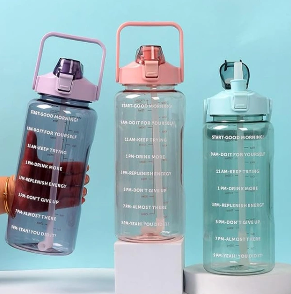 2L Motivational Water Bottle with Time Marker Bottle for Office, School, College Gym&Sports Time Marker Leak Proof & Break-Proof comes with Silicon Brush BPA-Free, Multicolor, Plastic